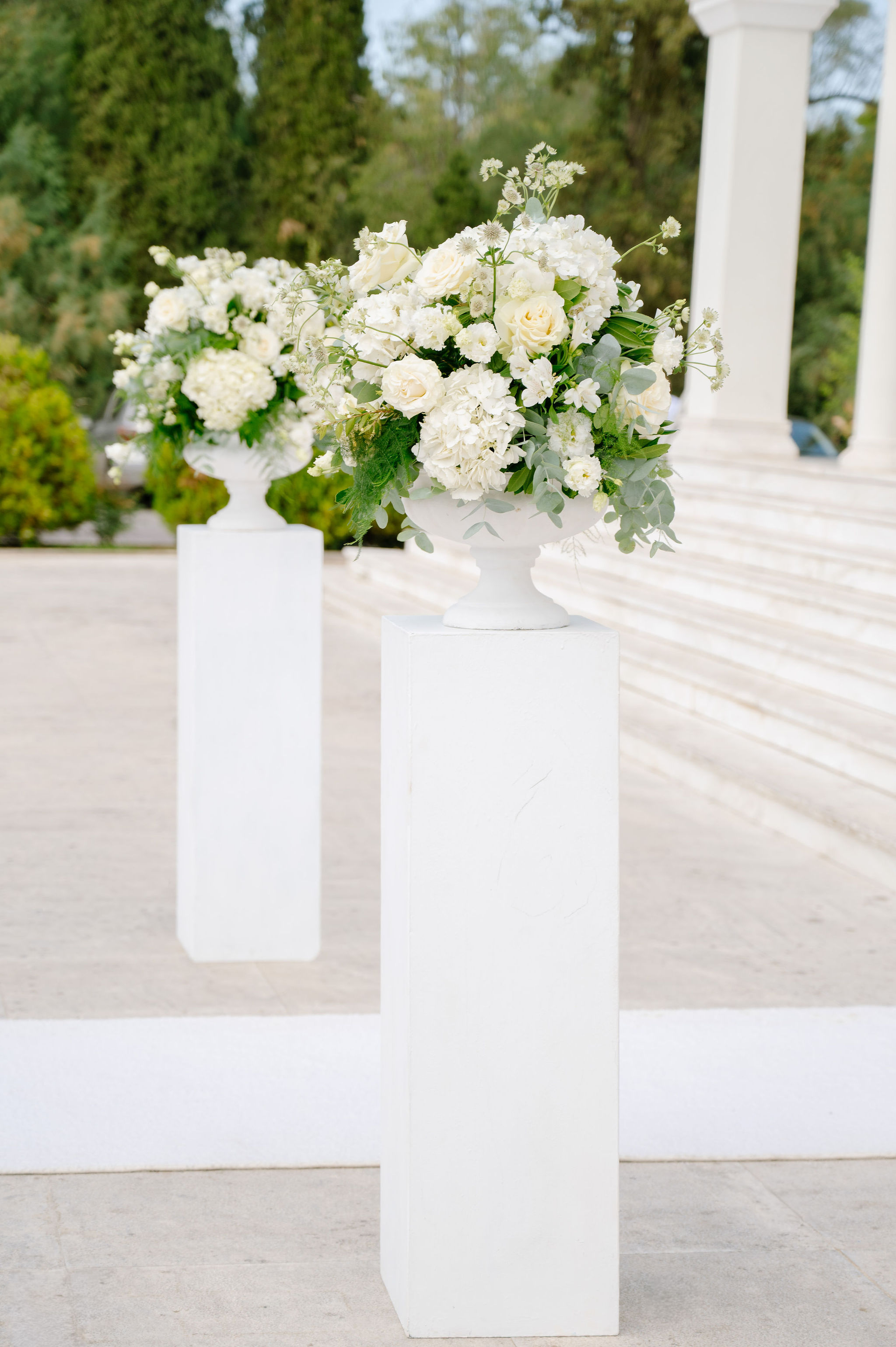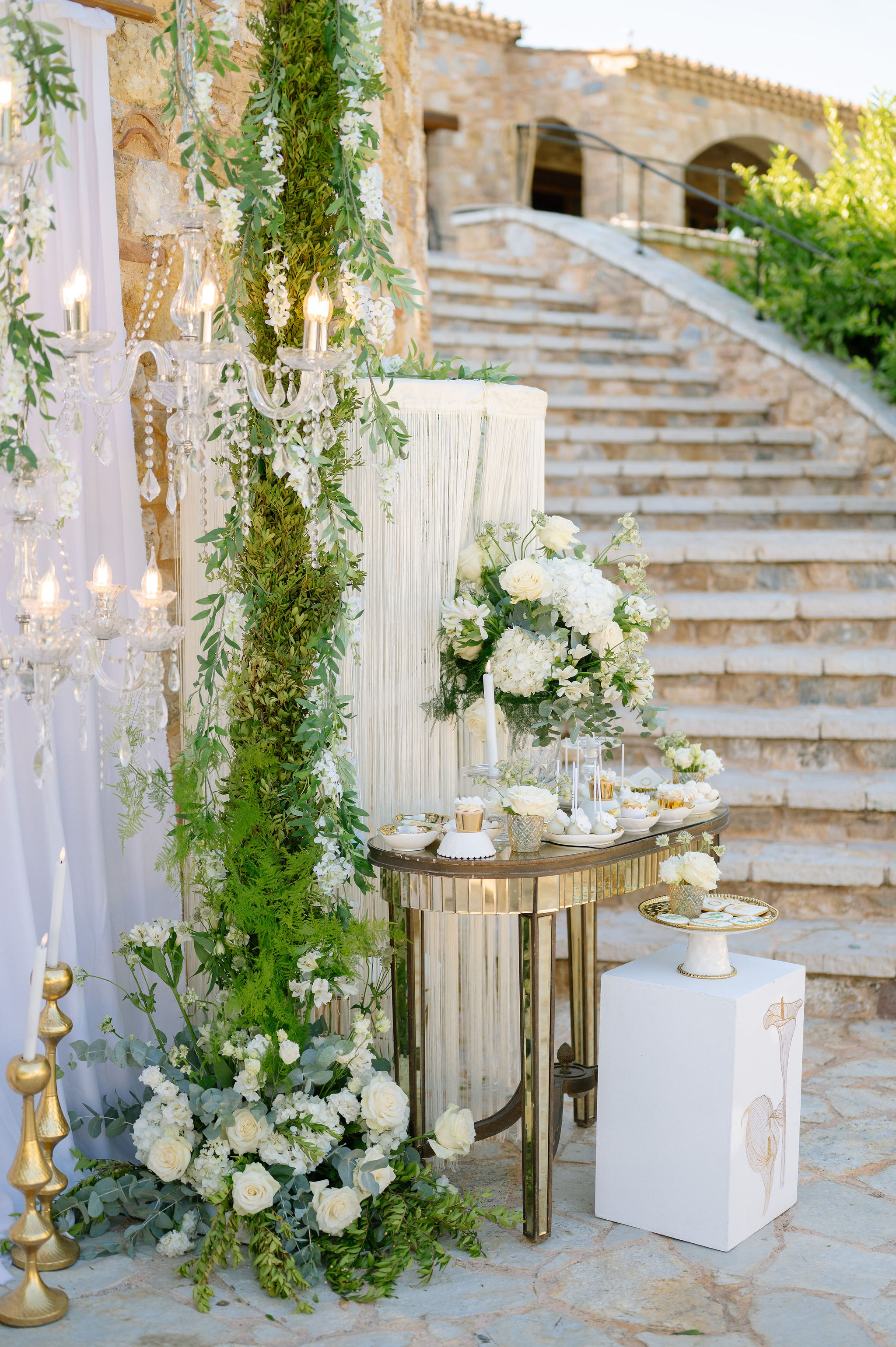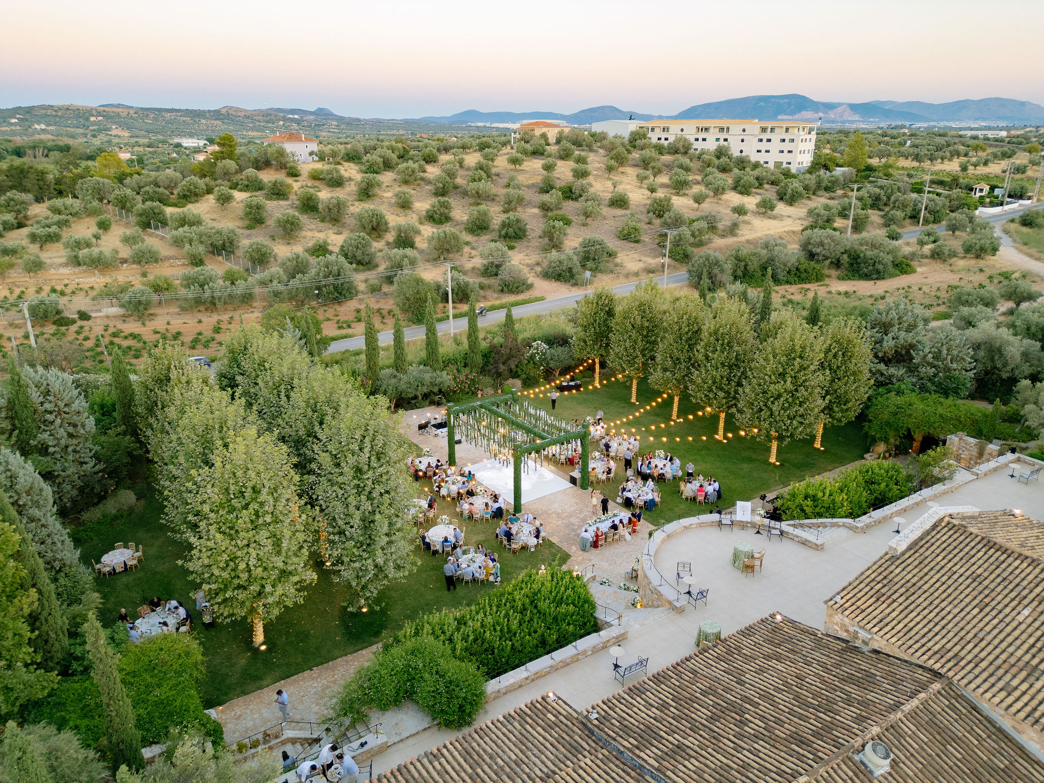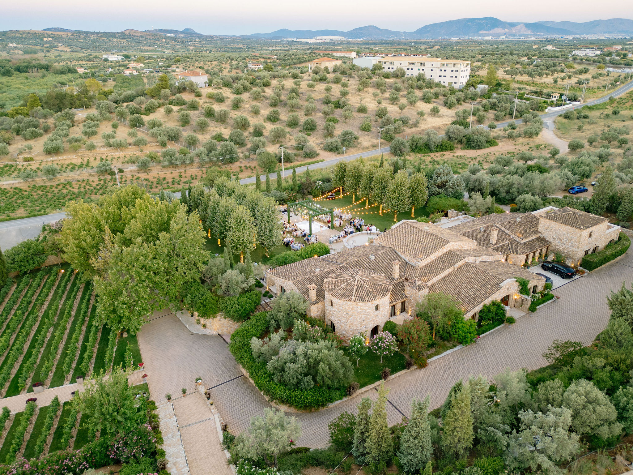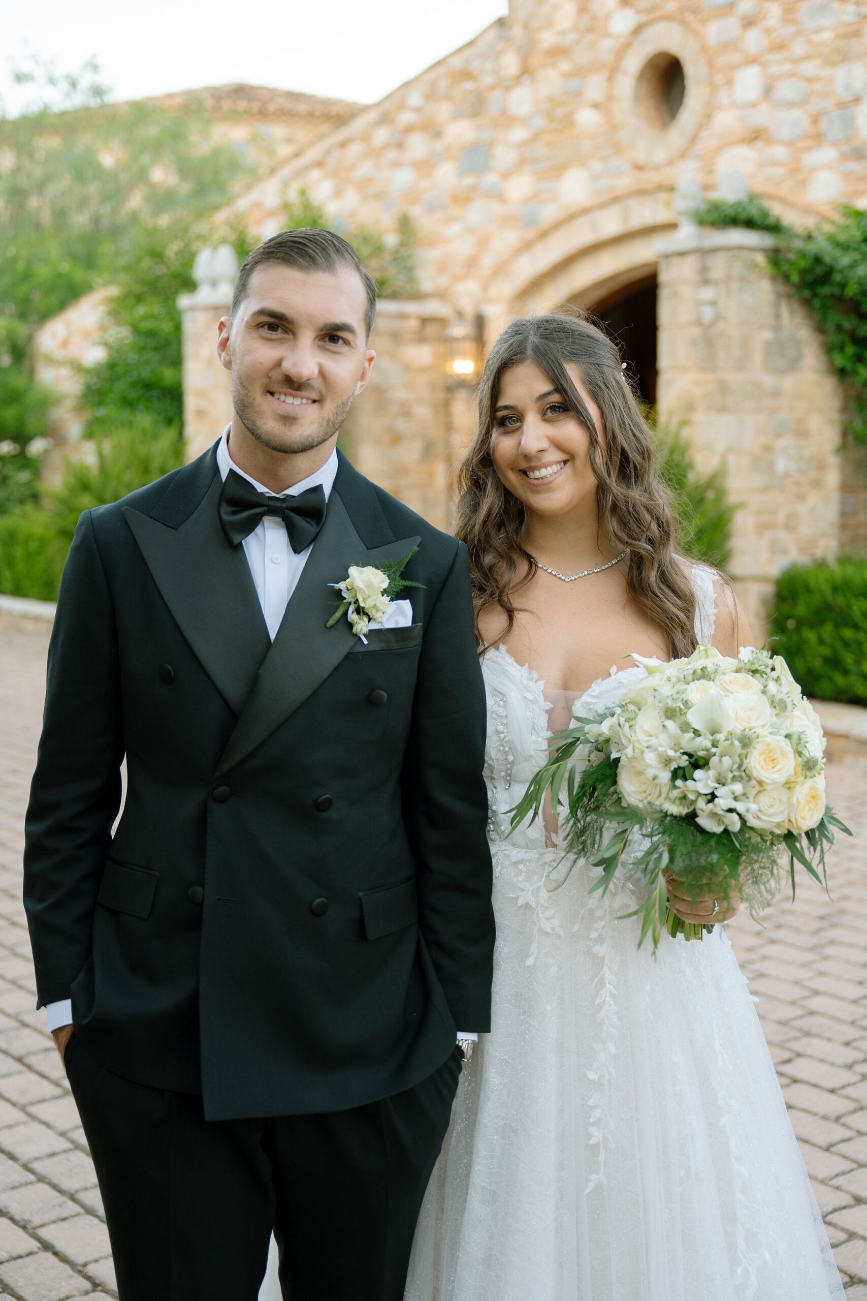 They chose Pyrgos Petreza, a stunning estate that blends elegance with natural beauty. Its lush greenery, serene surroundings and sophisticated architecture created the ideal backdrop for their destination wedding.