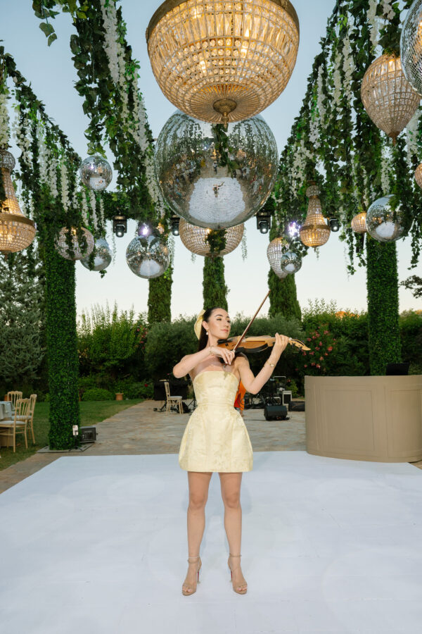 During the cocktail hour, guests enjoyed a live violin performance that perfectly complemented the sunset over the estate. The ambiance combined sophistication with romance, making every moment unforgettable.